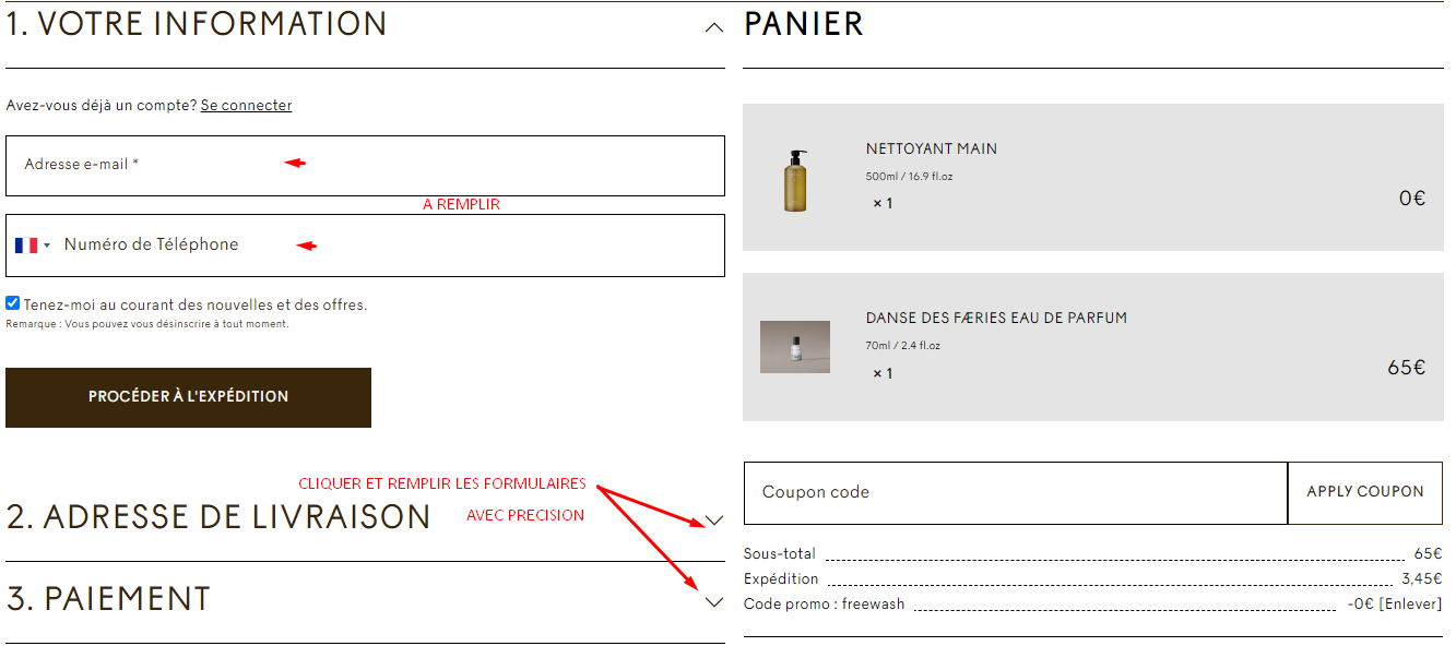 Dans la barre de menu, choisissez «Collections » , puis séléctionnez les produits désirés. Pour finaliser votre achat suivez simplement les étapes ci-dessous.